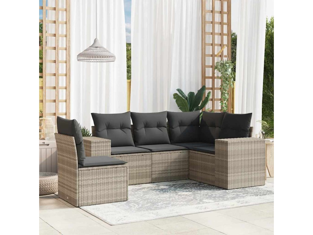 5dílná zahradní sedací souprava a podušky světle šedá polyratan 3222571