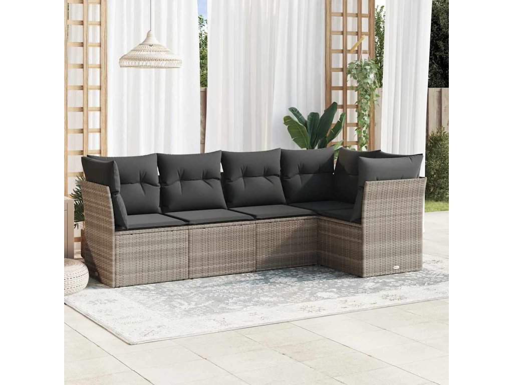 5dílná zahradní sedací souprava a podušky světle šedá polyratan 3249441