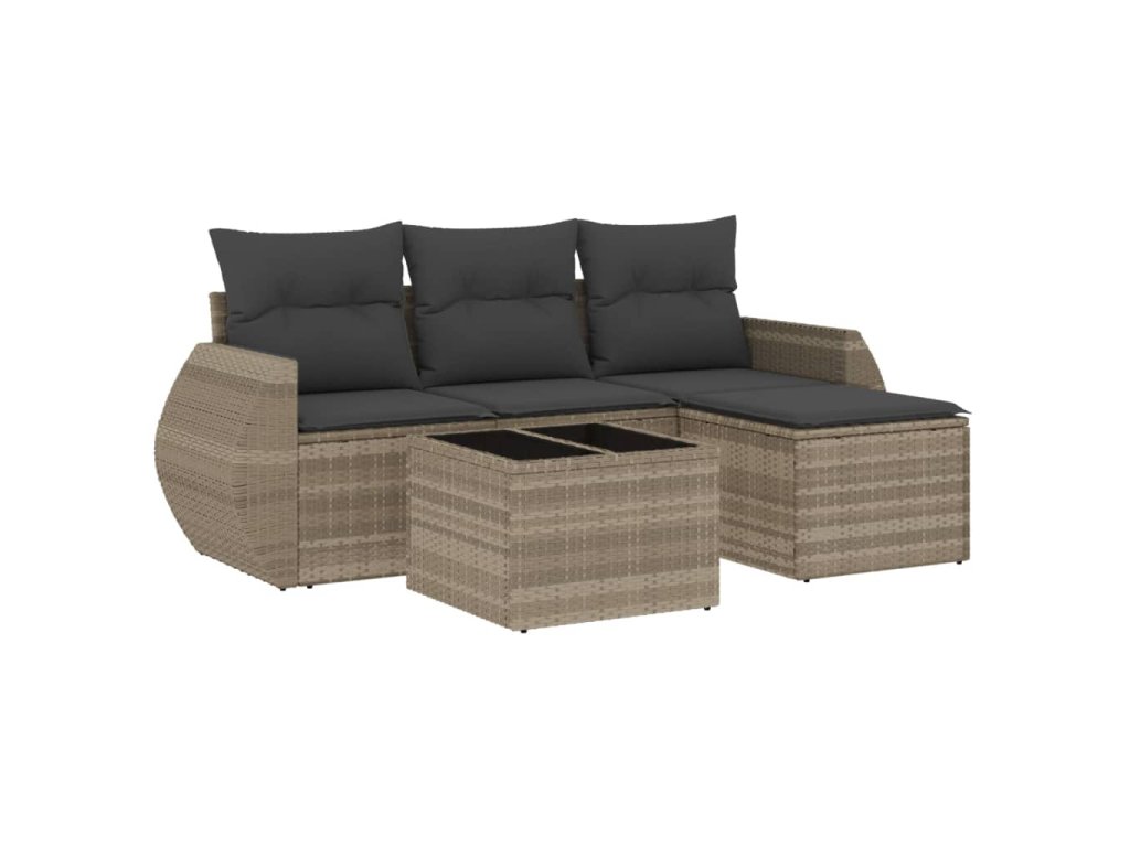5dílná zahradní sedací souprava a podušky světle šedá polyratan 3253619
