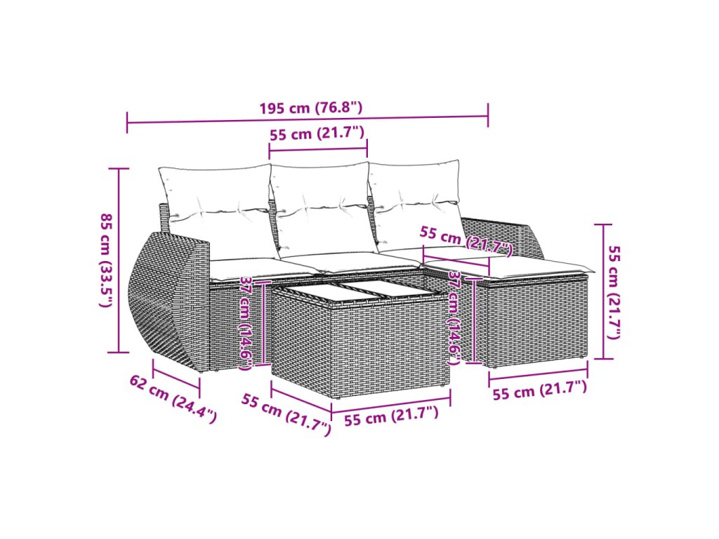 Tato zahradní sedací souprava je dokonalým doplňkem vaší zahrady, terasy nebo dvorku a poskytne vám pohodlné a příjemné místo, kde si můžete povídat s rodinou a přáteli nebo jen tak odpočívat a užívat si pobyt venku.