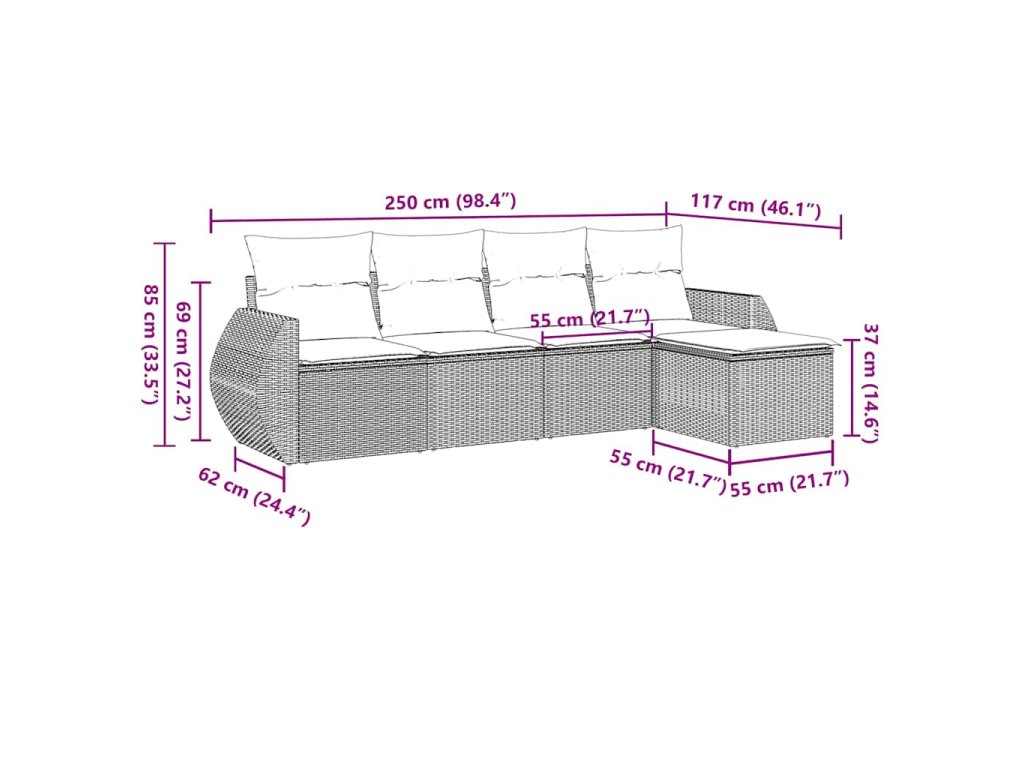 5dílná zahradní sedací souprava a podušky světle šedá polyratan 3253629