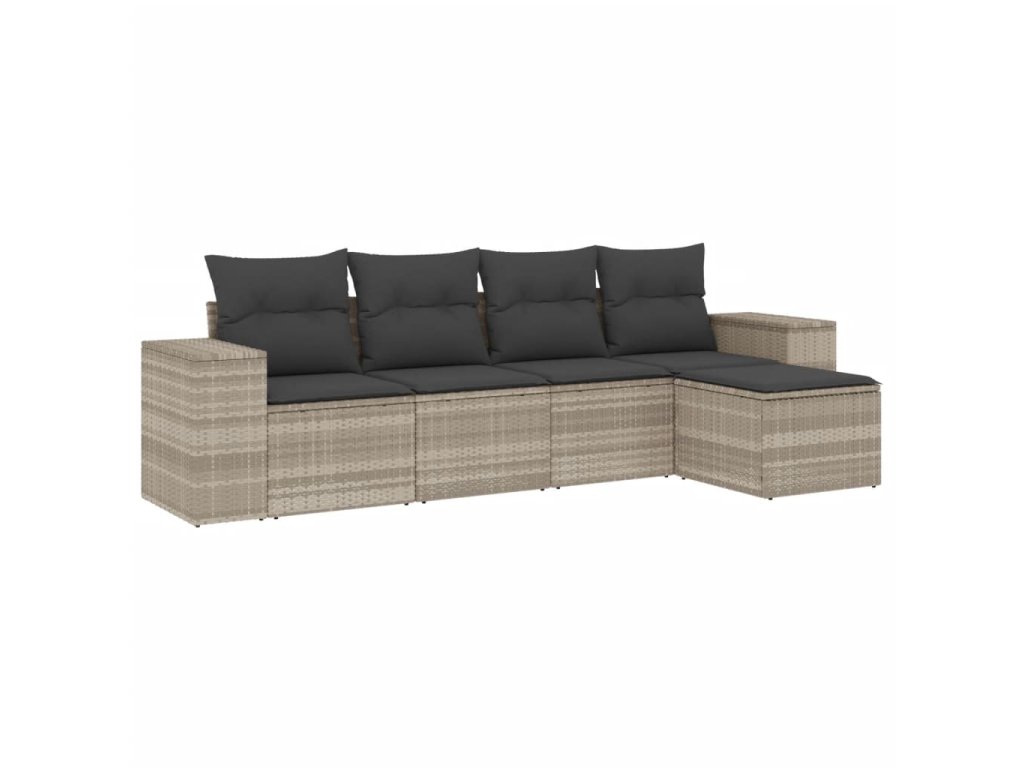 5dílná zahradní sedací souprava a podušky světle šedá polyratan 3254829