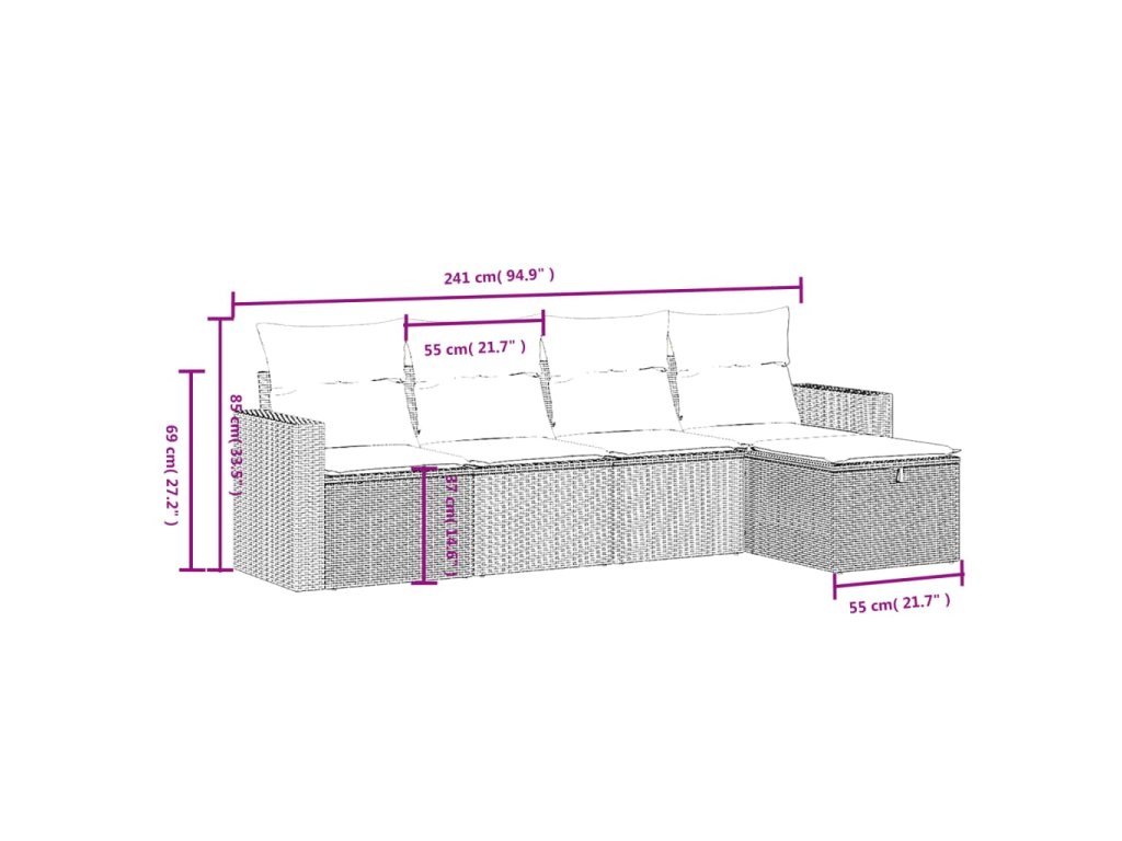 Tato zahradní sedací souprava je dokonalým doplňkem vaší zahrady, terasy nebo dvorku a poskytne vám pohodlné a příjemné místo, kde si můžete povídat s rodinou a přáteli nebo jen tak odpočívat a užívat si pobyt venku.
