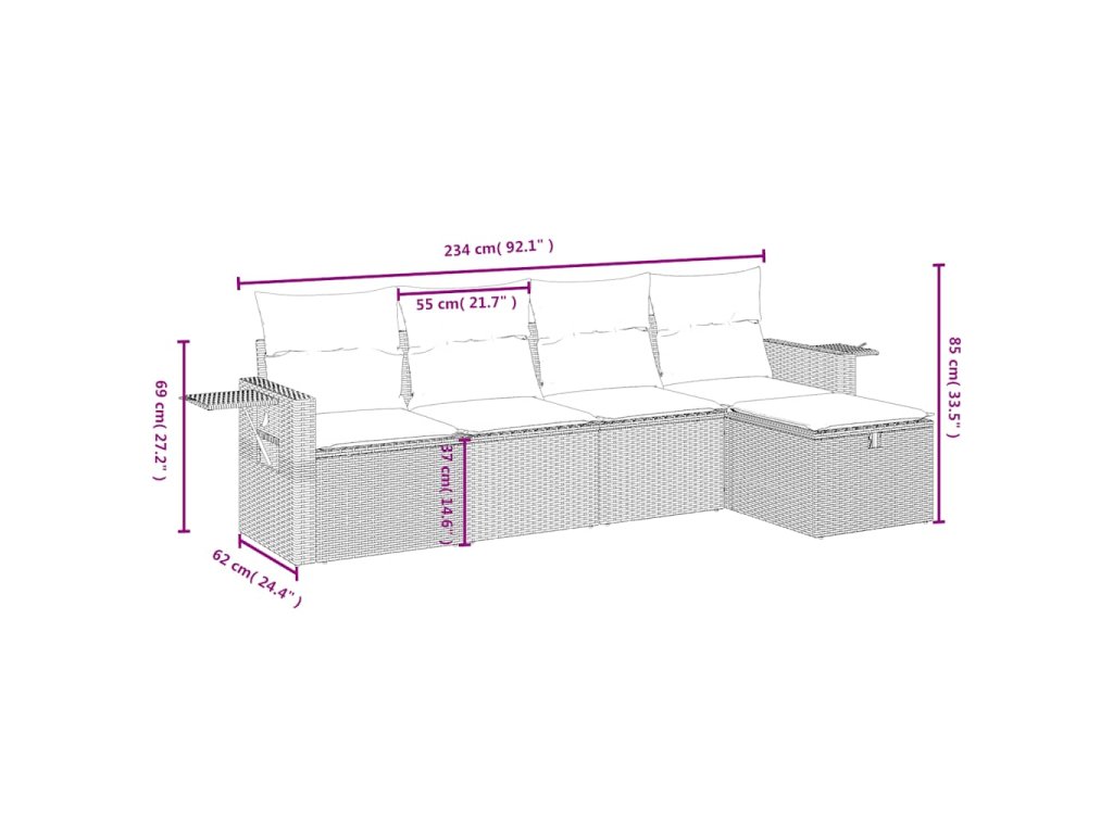 Tato zahradní sedací souprava je dokonalým doplňkem vaší zahrady, terasy nebo dvorku a poskytne vám pohodlné a příjemné místo, kde si můžete povídat s rodinou a přáteli nebo jen tak odpočívat a užívat si pobyt venku.