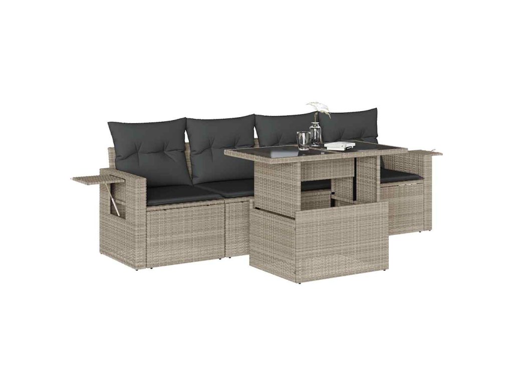 5dílná zahradní sedací souprava a podušky světle šedá polyratan 3267732