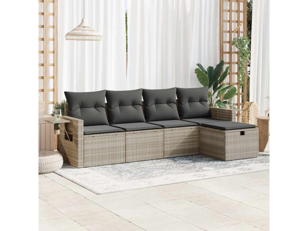 5dílná zahradní sedací souprava a podušky světle šedá polyratan 3325468