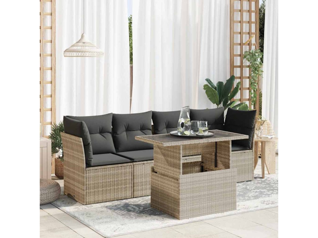 5dílná zahradní sedací souprava a podušky světle šedá polyratan 3326093