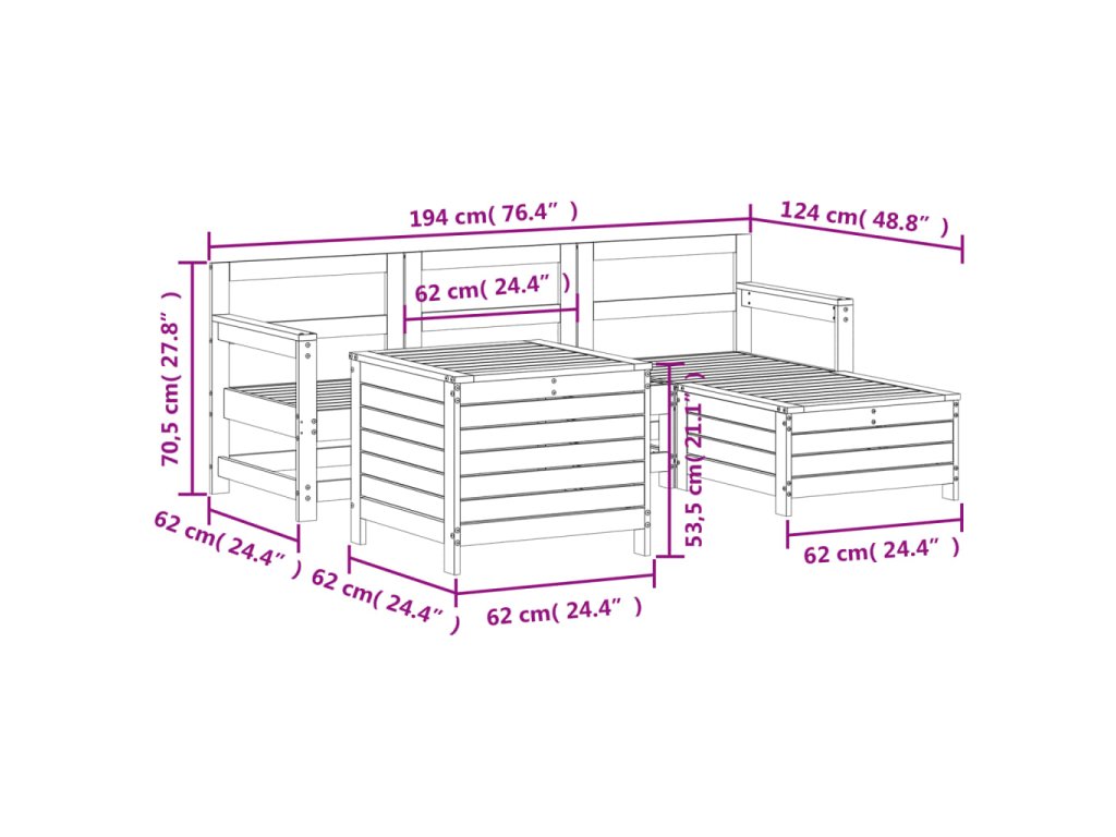 5dílná zahradní sedací souprava bílá masivní borové dřevo 3250505