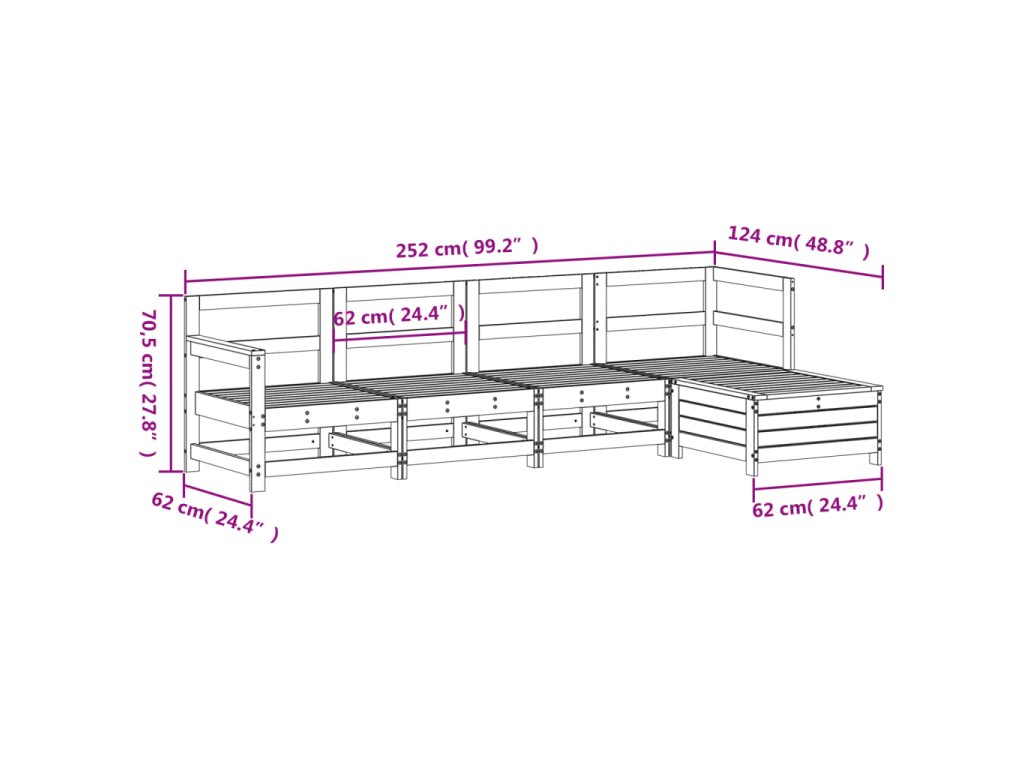 5dílná zahradní sedací souprava bílá masivní borové dřevo 3250845