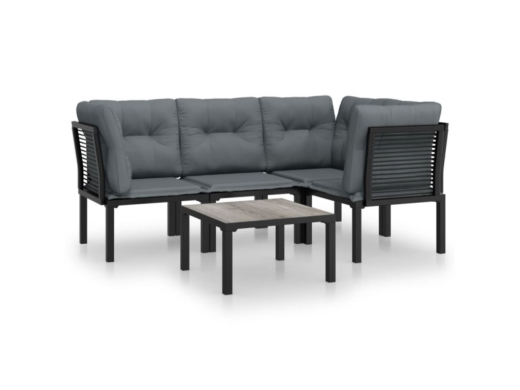 5dílná zahradní sedací souprava černá a šedá polyratan 3187752