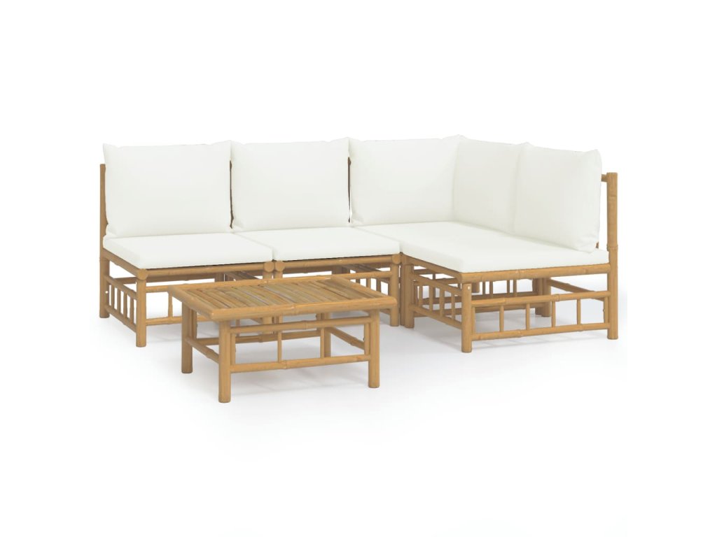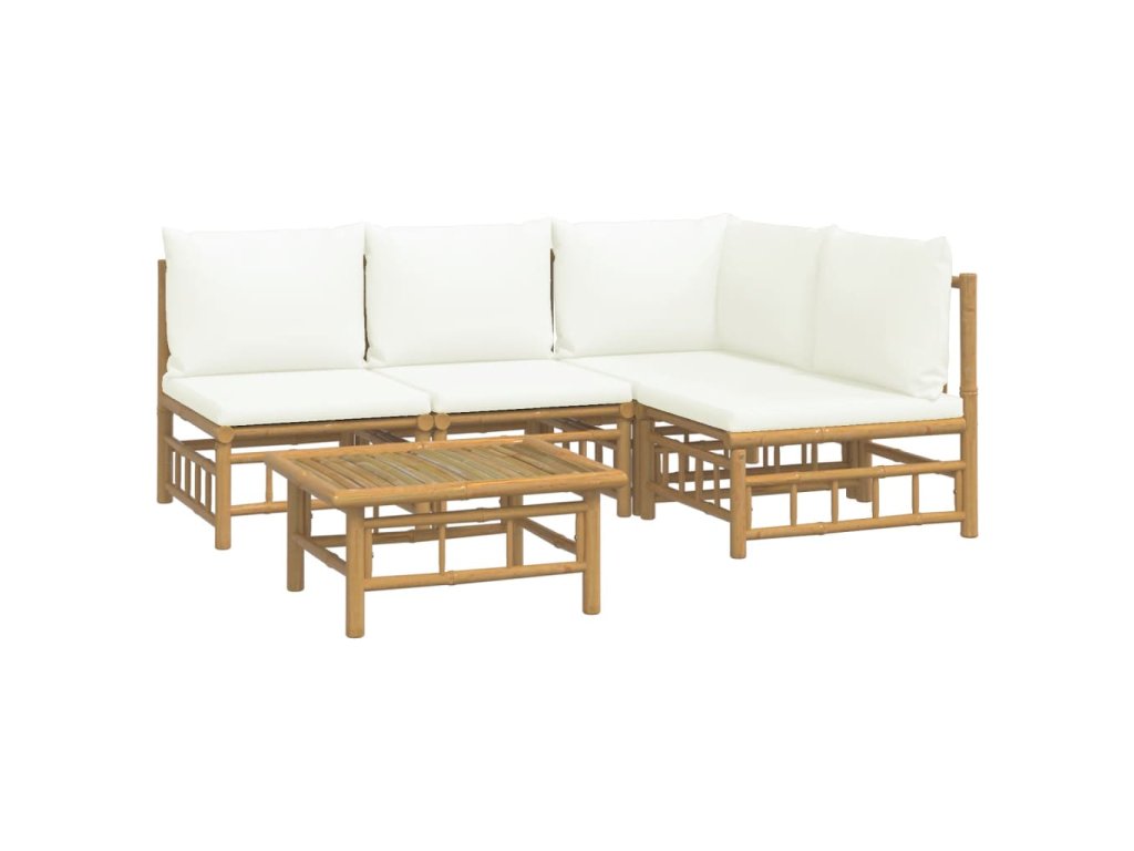 5dílná zahradní sedací souprava krémově bílé podušky bambus 3155202