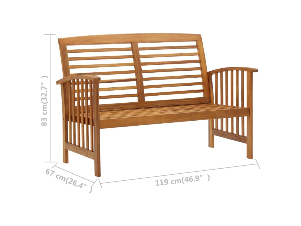 Set zahradního nábytku je zhotovený z masivního akáciového dřeva s olejovou úpravou, je stabilní a má dlouhou životnost. Konferenční stolek z masivní dřevěnou stolní deskou s lamelovým designem poslouží jako perfektní odkládací plocha pro vaše občerstvení, mísy s ovocem, dekorativní předměty a další nezbytnosti. Na lavičce a křesle s jemně zaobleným opěradlem a loketními opěrkami se velmi pohodlně sedí.