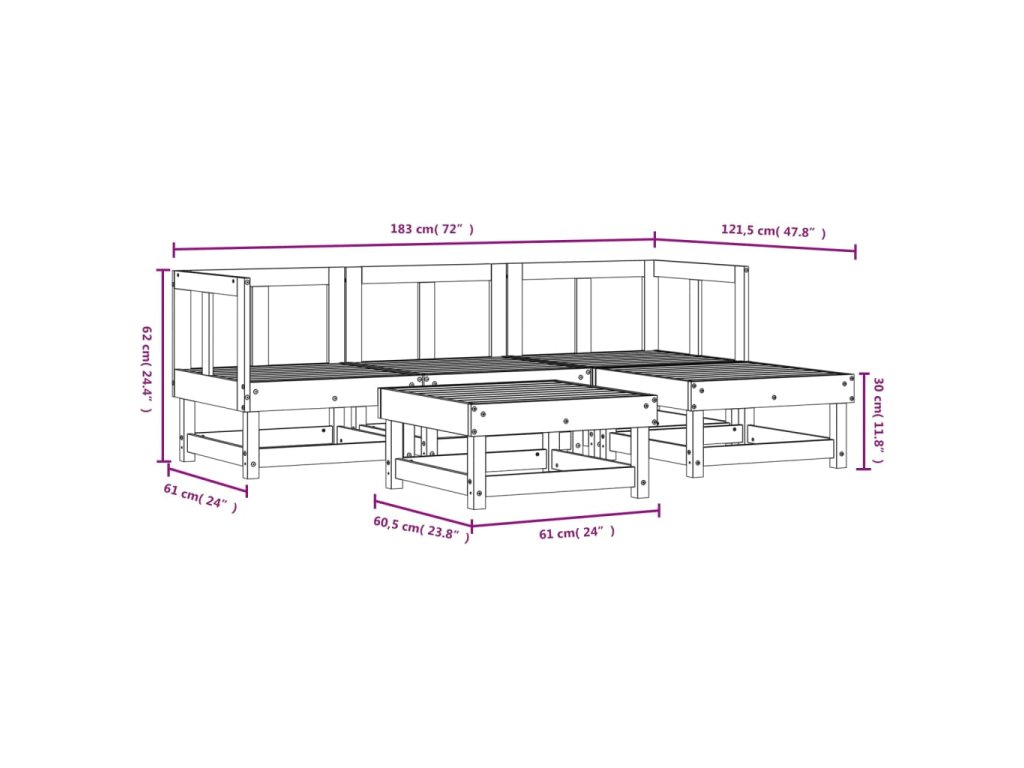- Rozměry středové pohovky: 61 x 60,5 x 62 cm (Š x H x V)