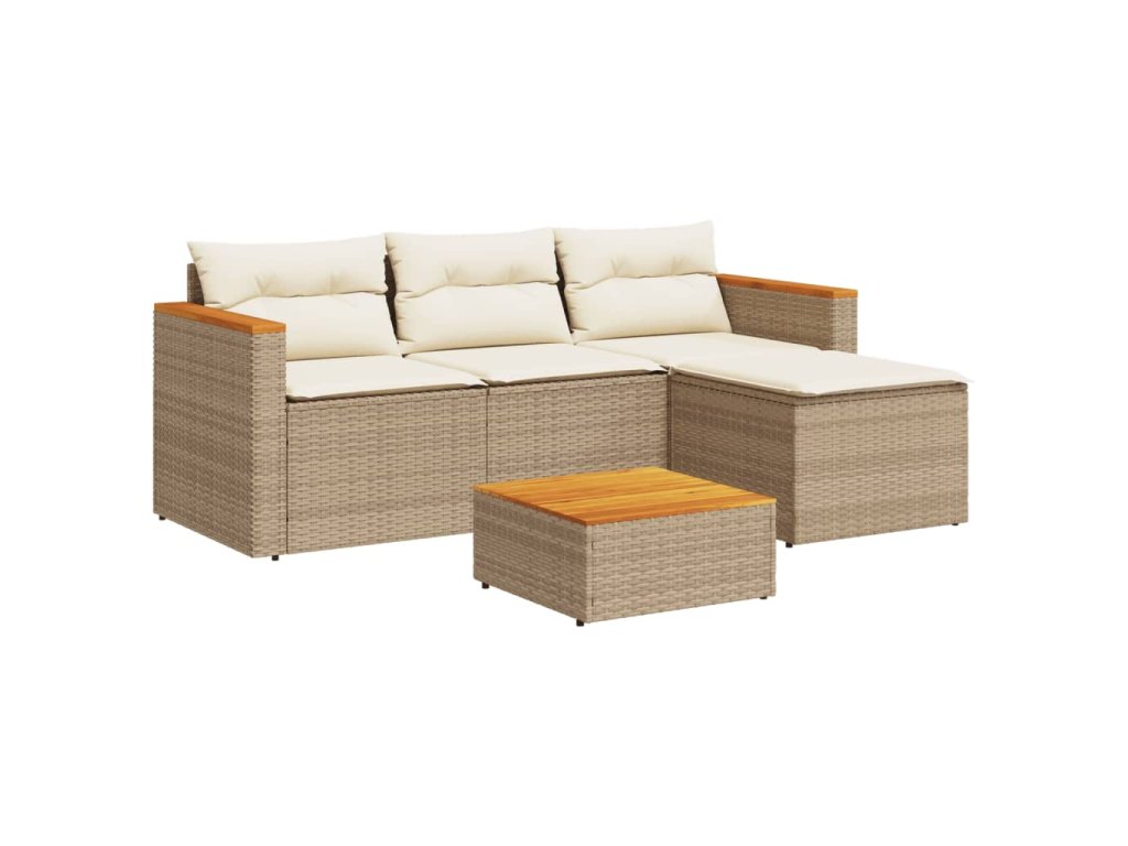5dílná zahradní sedací souprava podušky béžová polyratan akácie 3213539