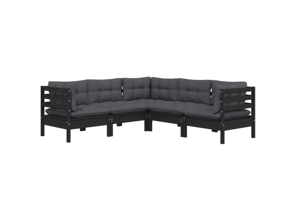 5dílná zahradní sedací souprava podušky černá masivní borovice 3096675