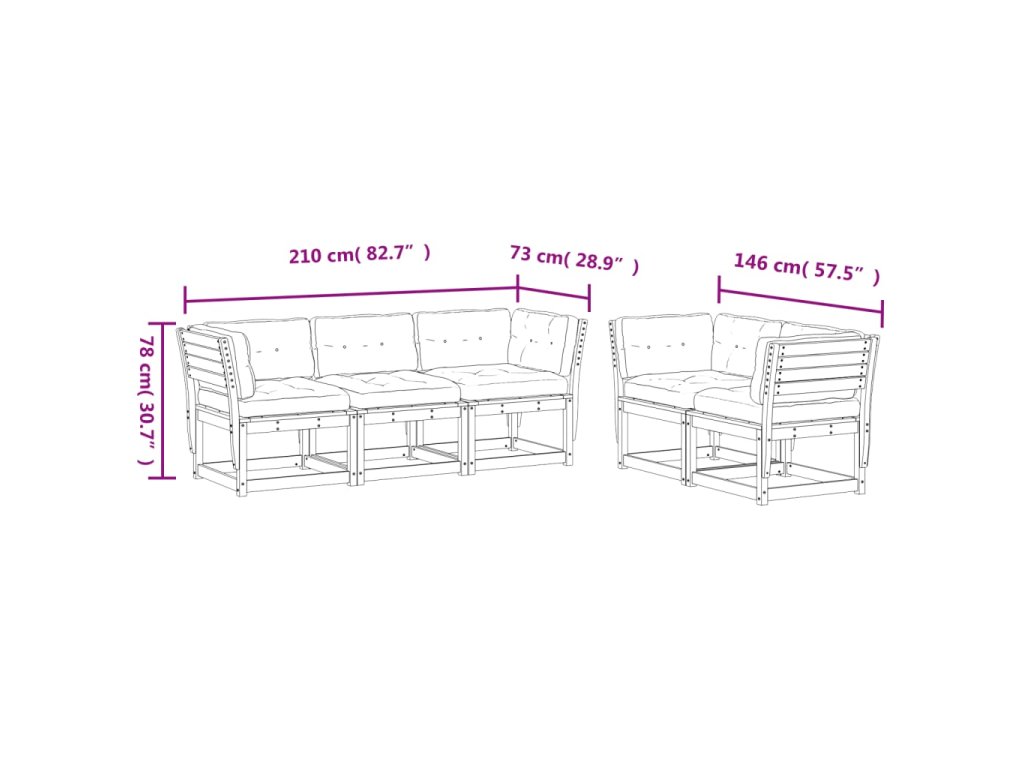 5dílná zahradní sedací souprava podušky voskově hnědá borovice 3217002