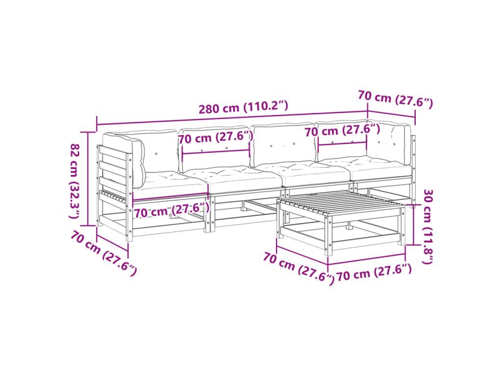 5dílná zahradní sedací souprava podušky voskově hnědá borovice 3299276