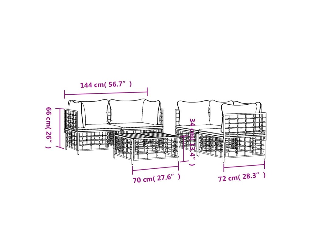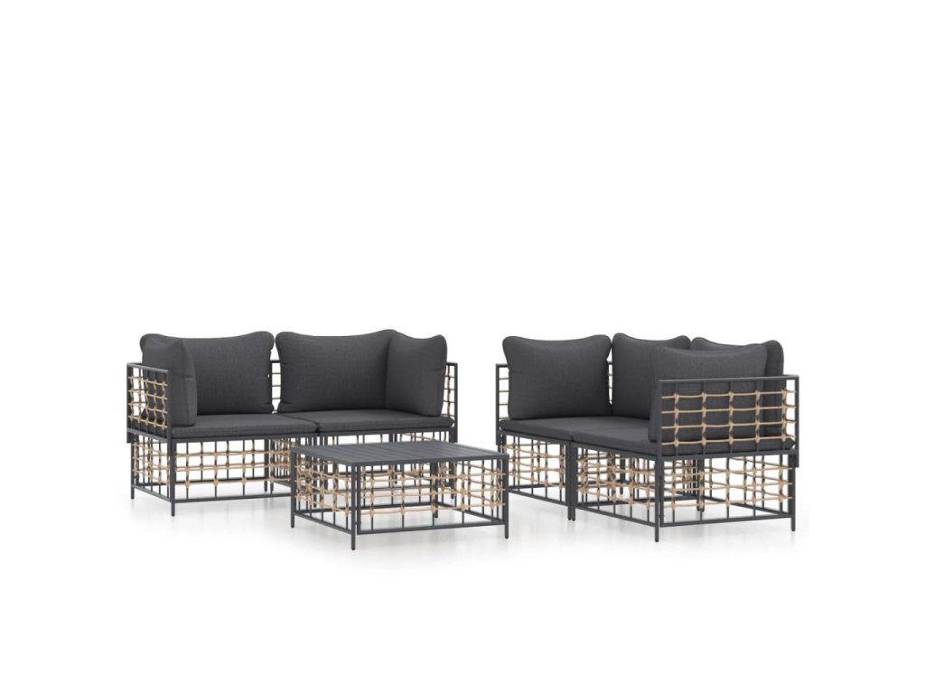 5dílná zahradní sedací souprava s poduškami antracit polyratan 3186703
