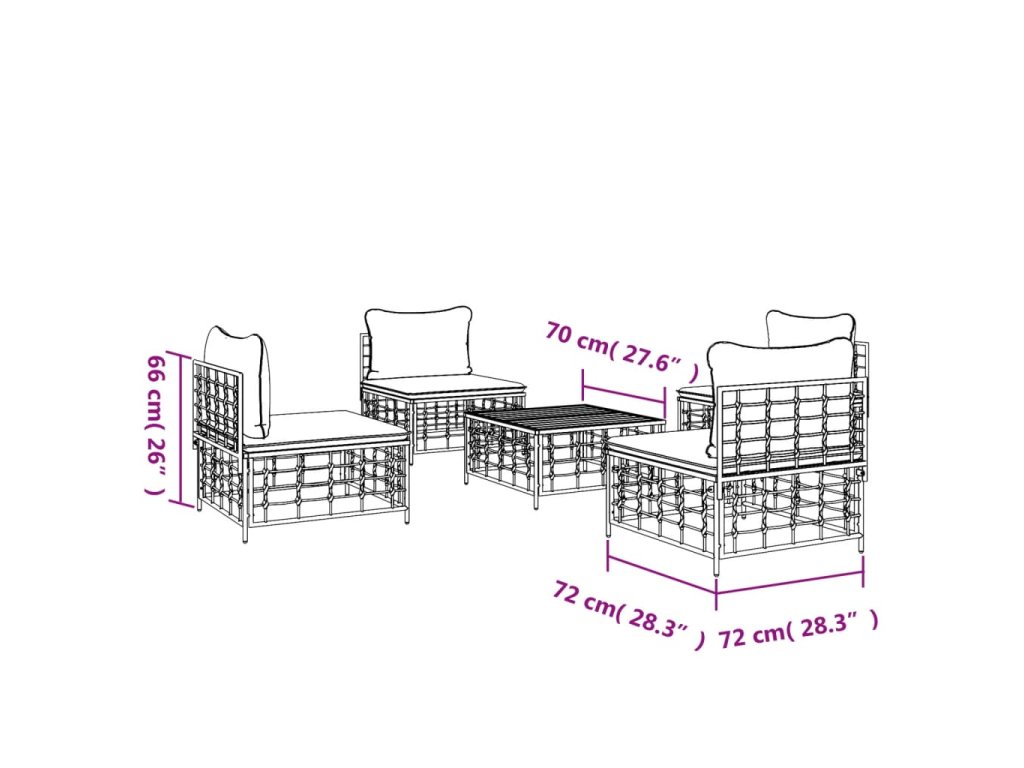5dílná zahradní sedací souprava s poduškami antracit polyratan 3186711