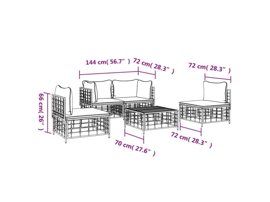 5dílná zahradní sedací souprava s poduškami antracit polyratan 3186714
