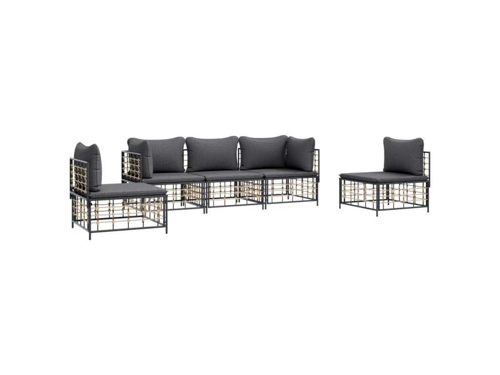 5dílná zahradní sedací souprava s poduškami antracit polyratan 3186717