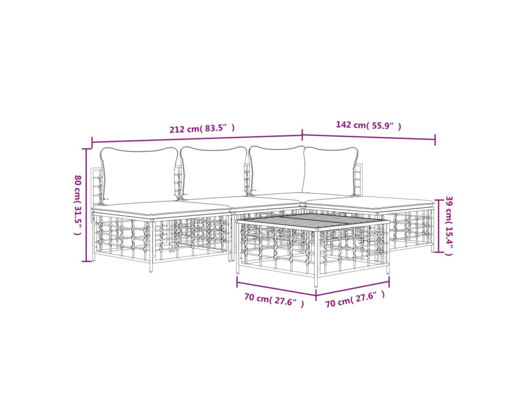 5dílná zahradní sedací souprava s poduškami antracit polyratan 3186732