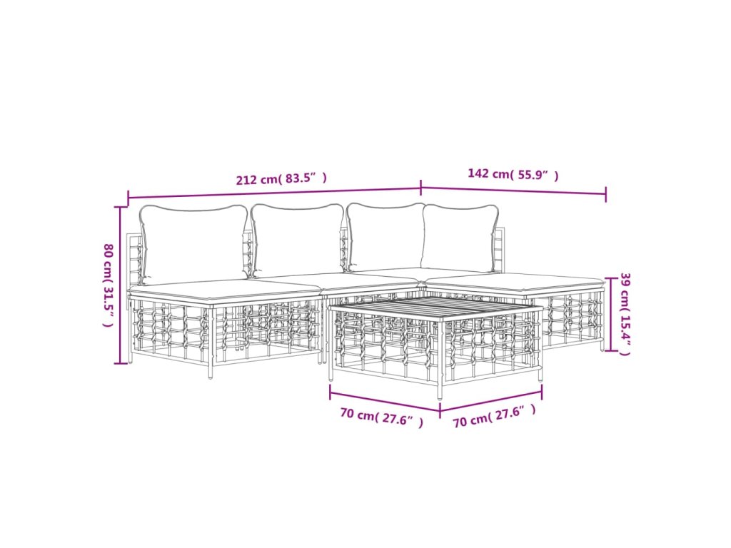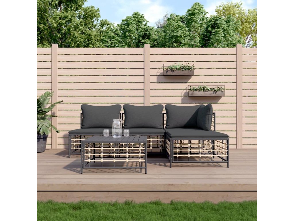 5dílná zahradní sedací souprava s poduškami antracit polyratan 3186733