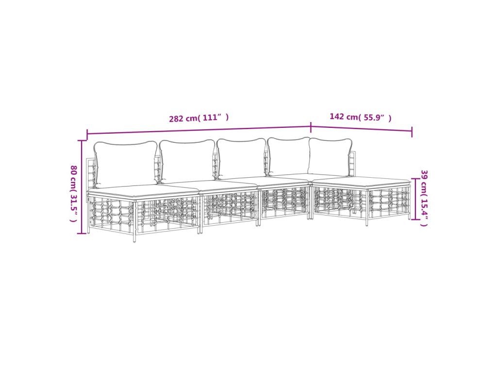 5dílná zahradní sedací souprava s poduškami antracit polyratan 3186735