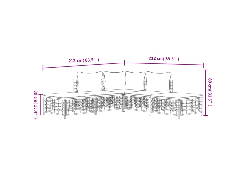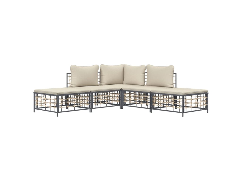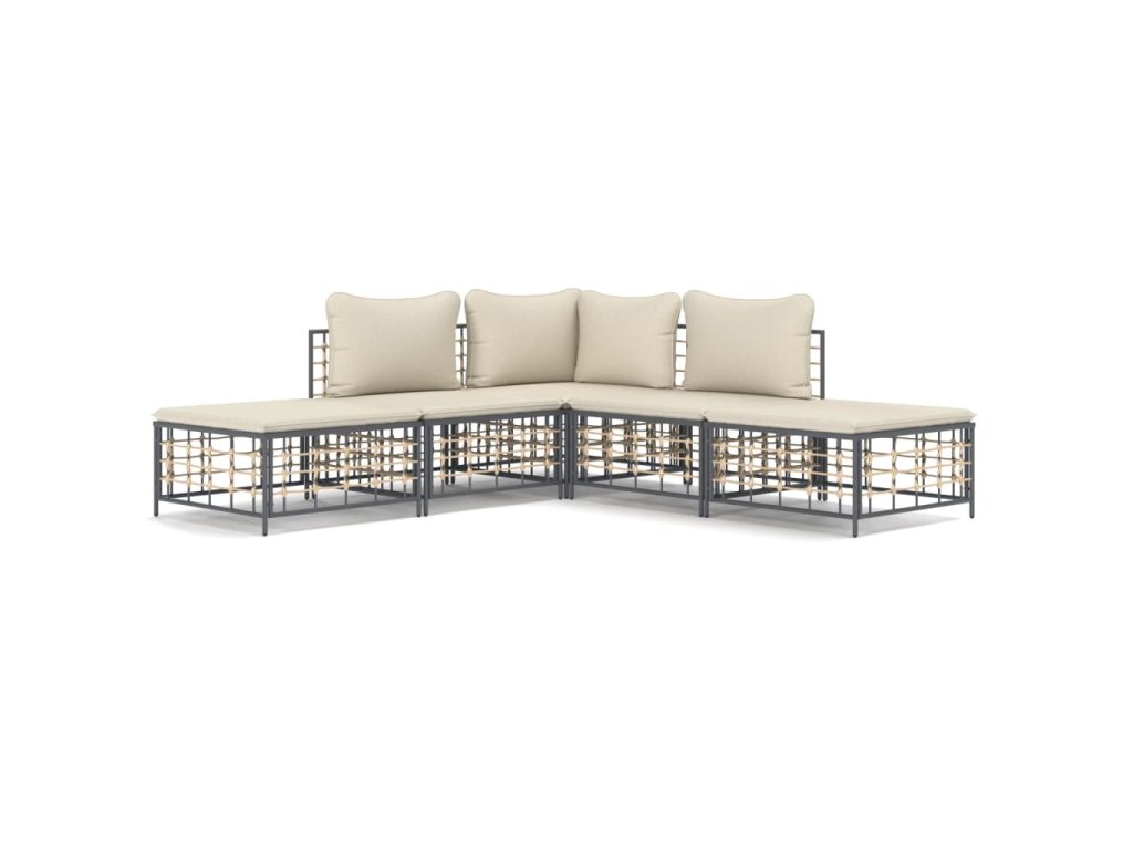 5dílná zahradní sedací souprava s poduškami antracit polyratan 3186760