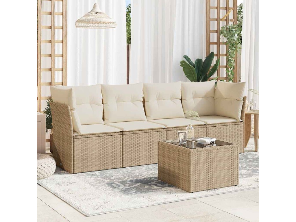 5dílná zahradní sedací souprava s poduškami béžová polyratan 3217238