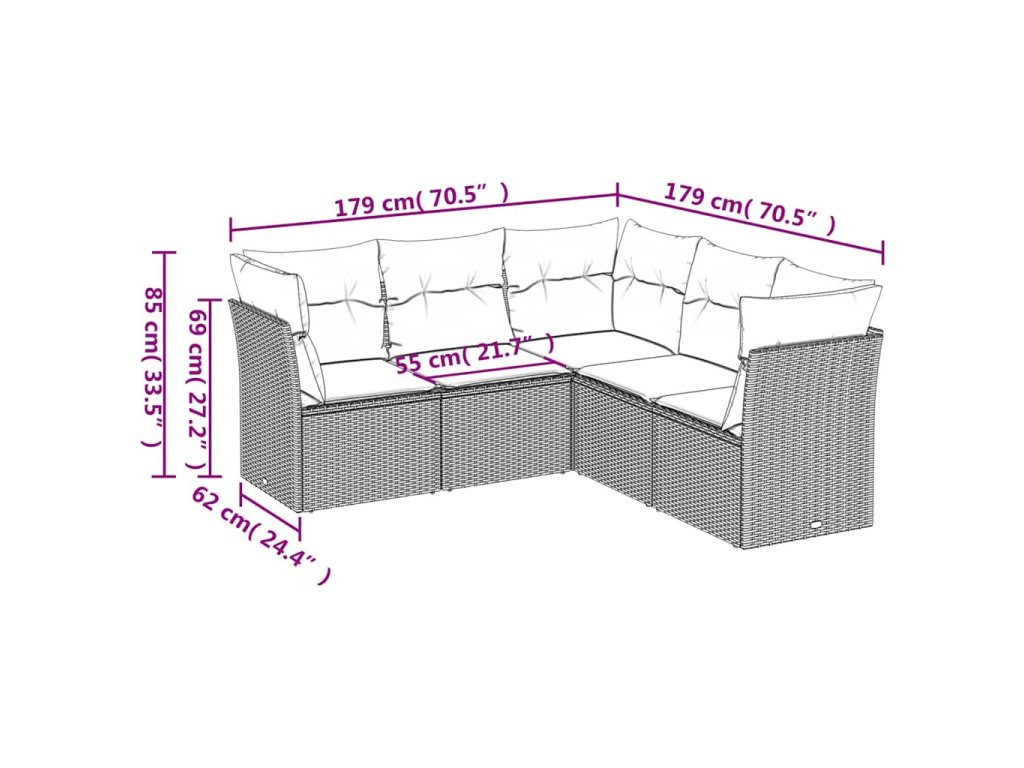 5dílná zahradní sedací souprava s poduškami béžová polyratan 3217618