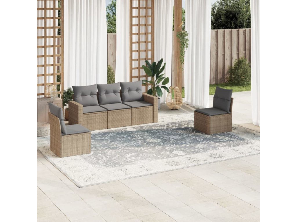 5dílná zahradní sedací souprava s poduškami béžová polyratan 3218779