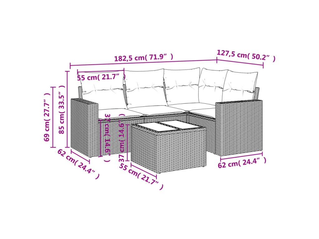 Tato zahradní sedací souprava je dokonalým doplňkem vaší zahrady, terasy nebo dvorku a poskytne vám pohodlné a příjemné místo, kde si můžete povídat s rodinou a přáteli nebo jen tak odpočívat a užívat si pobyt venku.