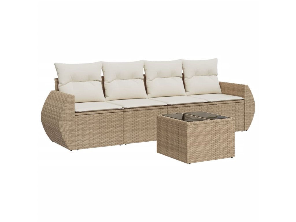 5dílná zahradní sedací souprava s poduškami béžová polyratan 3221087