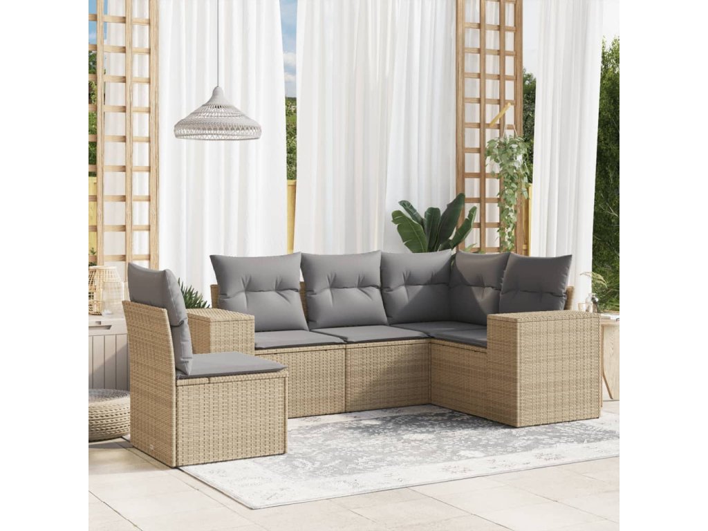 5dílná zahradní sedací souprava s poduškami béžová polyratan 3222568