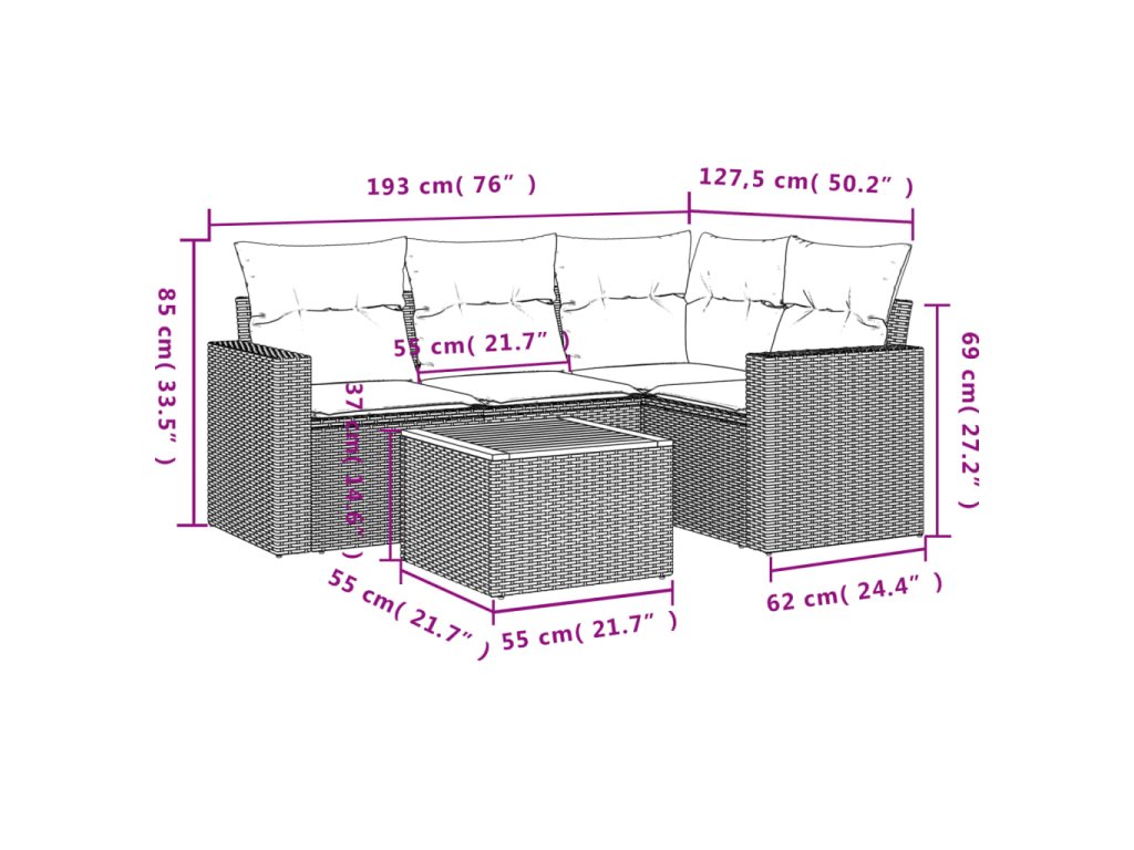 Tato zahradní sedací souprava je dokonalým doplňkem vaší zahrady, terasy nebo dvorku a poskytne vám pohodlné a příjemné místo, kde si můžete povídat s rodinou a přáteli nebo jen tak odpočívat a užívat si pobyt venku.