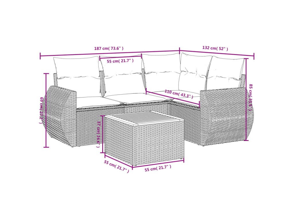 Tato zahradní sedací souprava je dokonalým doplňkem vaší zahrady, terasy nebo dvorku a poskytne vám pohodlné a příjemné místo, kde si můžete povídat s rodinou a přáteli nebo jen tak odpočívat a užívat si pobyt venku.