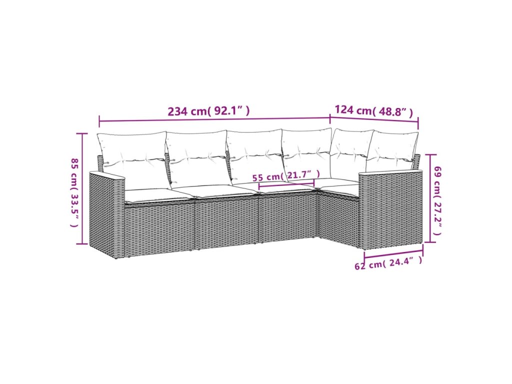 Tato zahradní sedací souprava je dokonalým doplňkem vaší zahrady, terasy nebo dvorku a poskytne vám pohodlné a příjemné místo, kde si můžete povídat s rodinou a přáteli nebo jen tak odpočívat a užívat si pobyt venku.