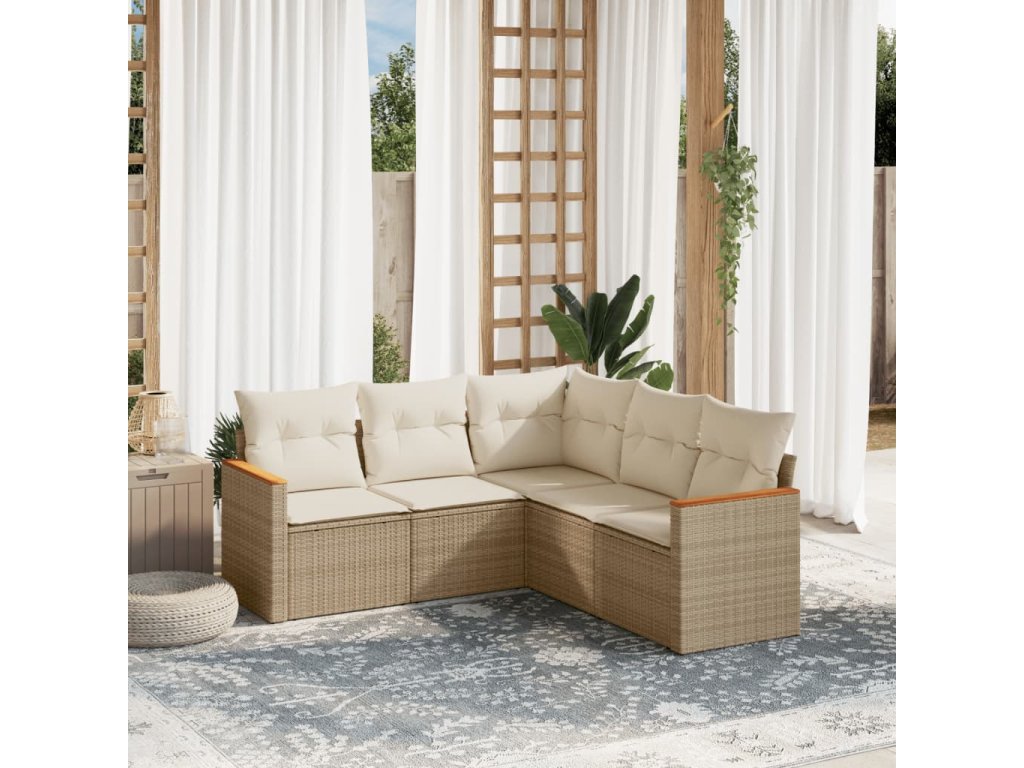 5dílná zahradní sedací souprava s poduškami béžová polyratan 3225960
