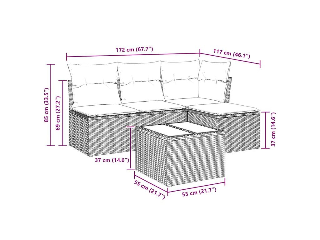 Tato zahradní sedací souprava je dokonalým doplňkem vaší zahrady, terasy nebo dvorku a poskytne vám pohodlné a příjemné místo, kde si můžete povídat s rodinou a přáteli nebo jen tak odpočívat a užívat si pobyt venku.