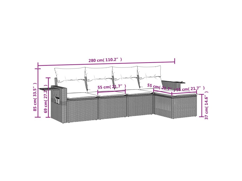 Tato zahradní sedací souprava je dokonalým doplňkem vaší zahrady, terasy nebo dvorku a poskytne vám pohodlné a příjemné místo, kde si můžete povídat s rodinou a přáteli nebo jen tak odpočívat a užívat si pobyt venku.