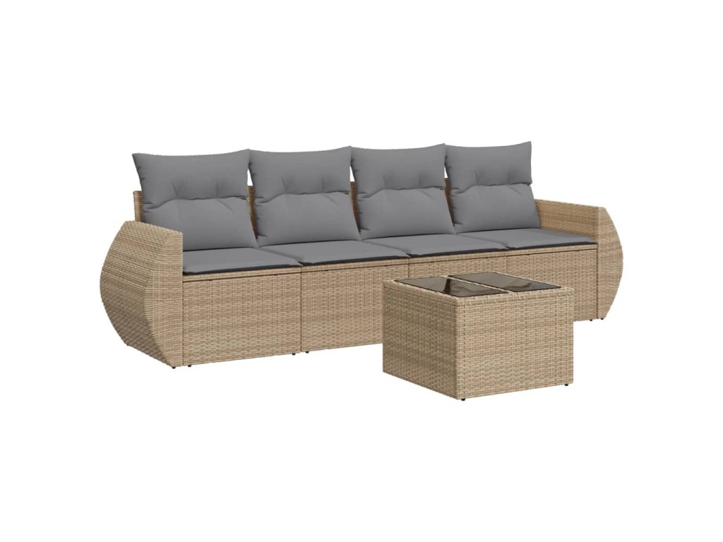 5dílná zahradní sedací souprava s poduškami béžová polyratan 3253426
