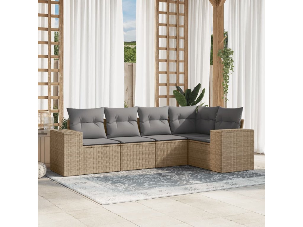 5dílná zahradní sedací souprava s poduškami béžová polyratan 3254866