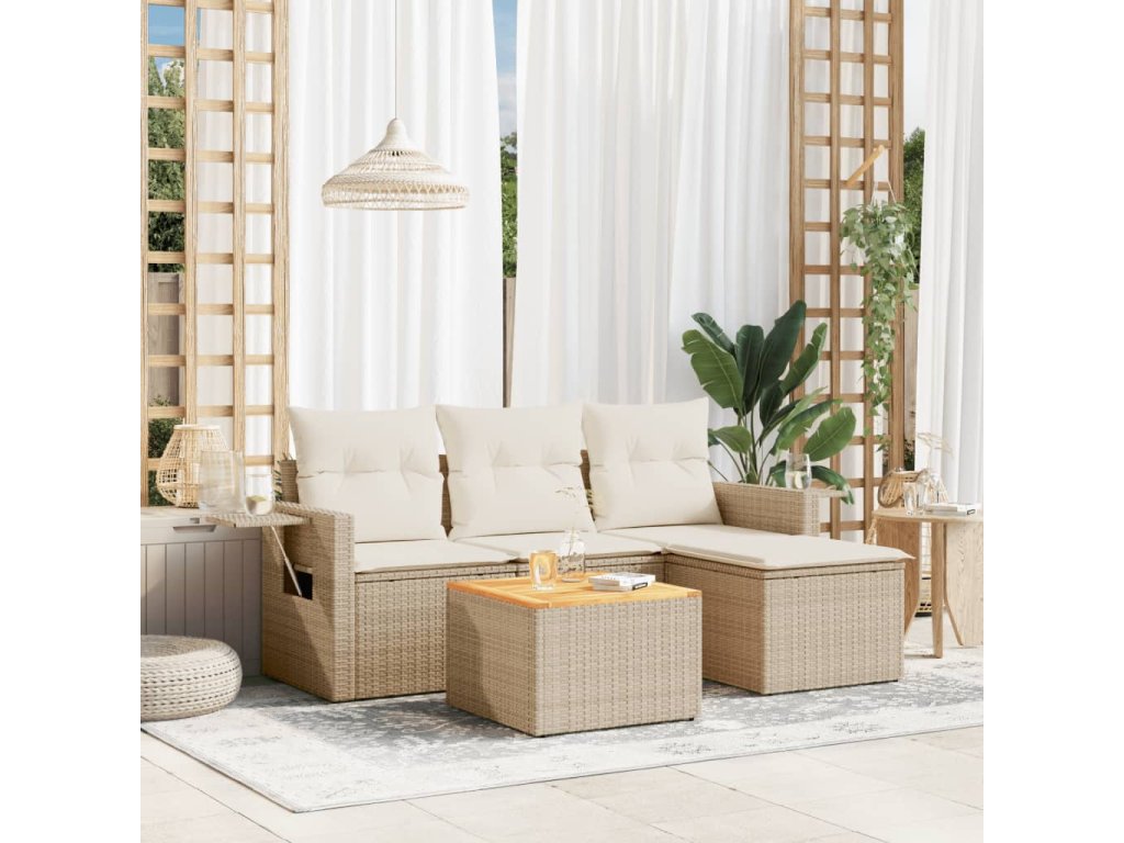 5dílná zahradní sedací souprava s poduškami béžová polyratan 3256863