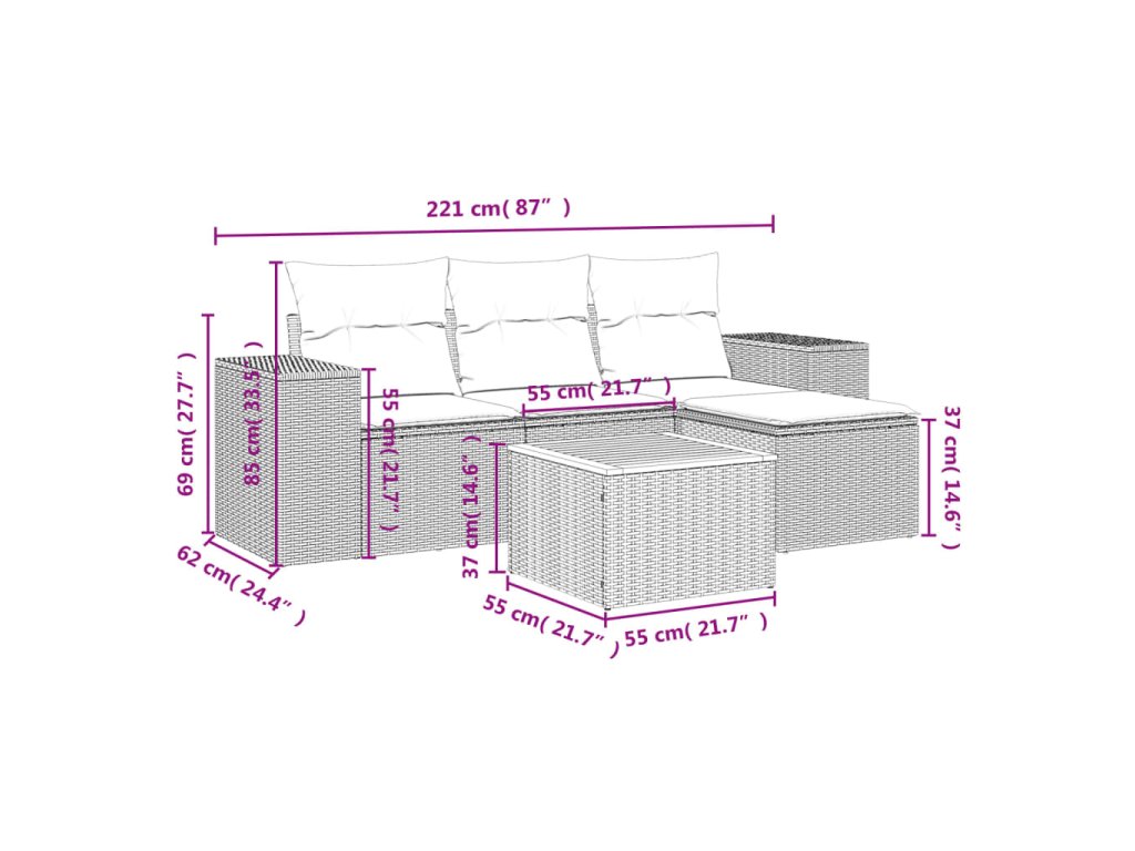 Tato zahradní sedací souprava je dokonalým doplňkem vaší zahrady, terasy nebo dvorku a poskytne vám pohodlné a příjemné místo, kde si můžete povídat s rodinou a přáteli nebo jen tak odpočívat a užívat si pobyt venku.