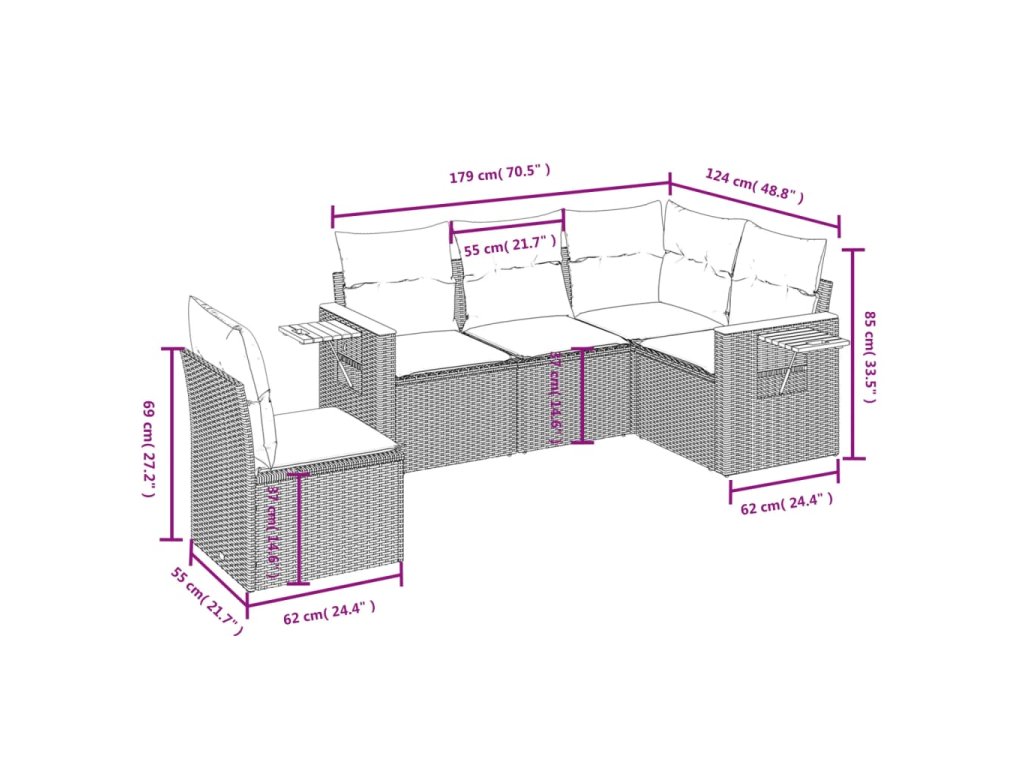 Tato zahradní sedací souprava je dokonalým doplňkem vaší zahrady, terasy nebo dvorku a poskytne vám pohodlné a příjemné místo, kde si můžete povídat s rodinou a přáteli nebo jen tak odpočívat a užívat si pobyt venku.