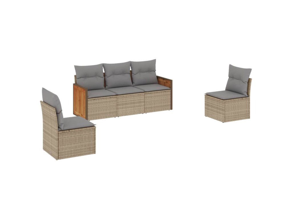 5dílná zahradní sedací souprava s poduškami béžová polyratan 3259931