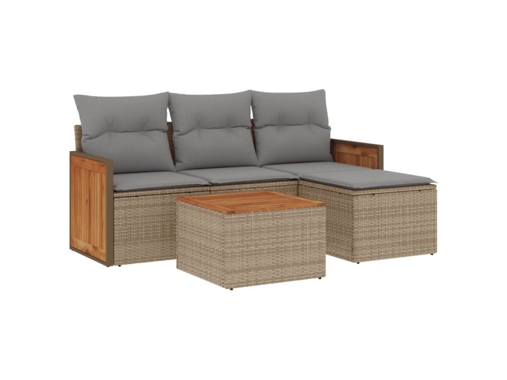 5dílná zahradní sedací souprava s poduškami béžová polyratan 3259994