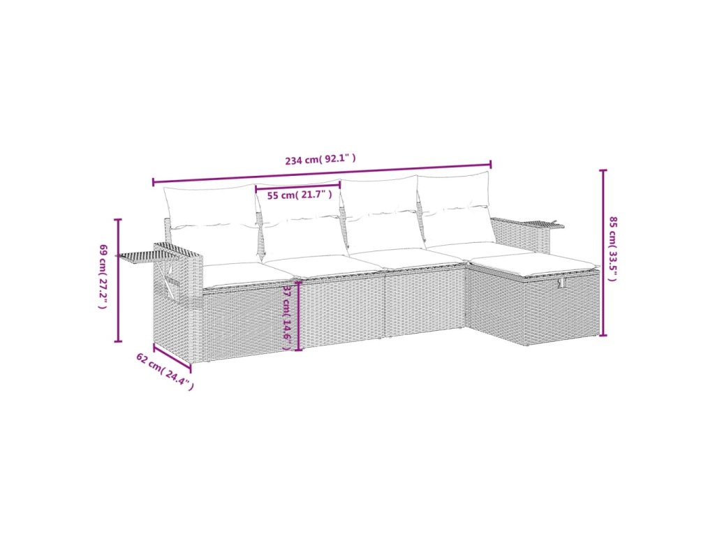 Tato zahradní sedací souprava je dokonalým doplňkem vaší zahrady, terasy nebo dvorku a poskytne vám pohodlné a příjemné místo, kde si můžete povídat s rodinou a přáteli nebo jen tak odpočívat a užívat si pobyt venku.