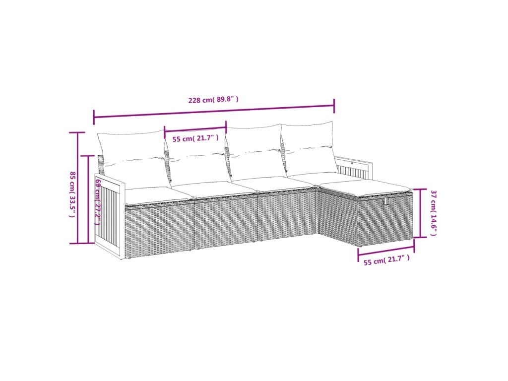Tato zahradní sedací souprava je dokonalým doplňkem vaší zahrady, terasy nebo dvorku a poskytne vám pohodlné a příjemné místo, kde si můžete povídat s rodinou a přáteli nebo jen tak odpočívat a užívat si pobyt venku.